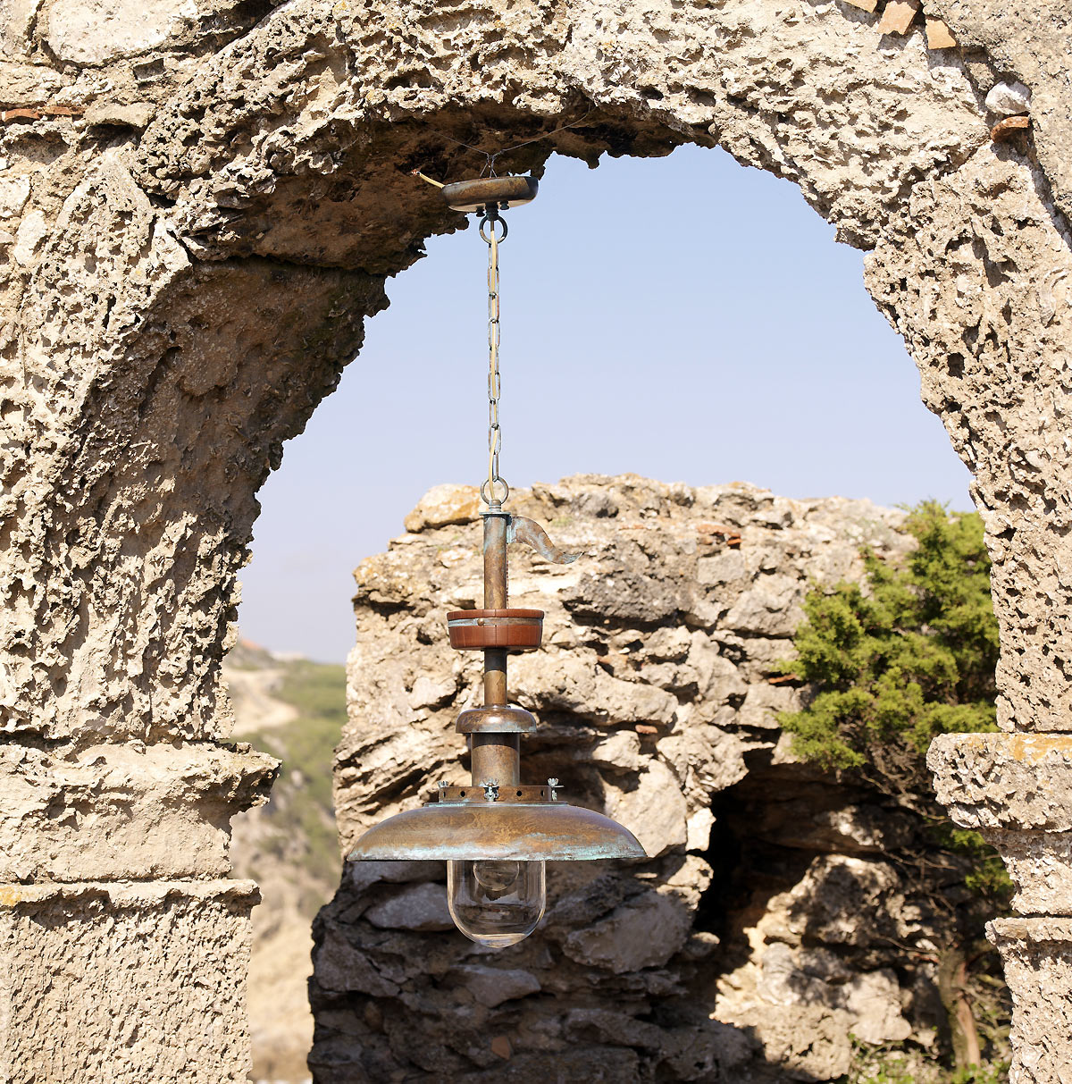 Португальская семейная компания Фария предлагает смелый эксперимент. Подвесной абажур из бронзы напоминает уличный фонарь, скрипящий и раскачивающийся на ветру. Использовать такую дома можно, если дизайн выдержан в колониальном стиле или оформлен под лофт.
