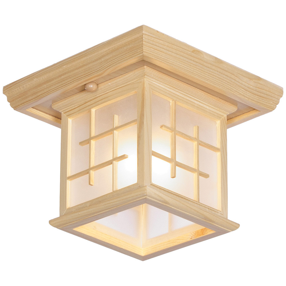 По этому светильнику сразу можно определить китайский стиль. Он выполнен из дерева и матового стекла в витражной технике и напоминает ширмы или дворцы-пагоды. Минималистичный стиль покоряет своей простотой и естественностью. Деревянный каркас универсален, его можно подобрать в цвет половой доски, паркета, дверей, мебели.