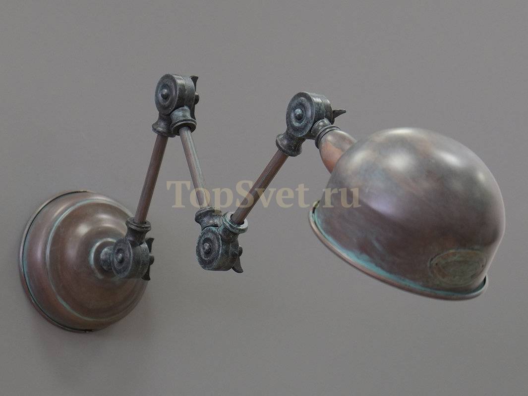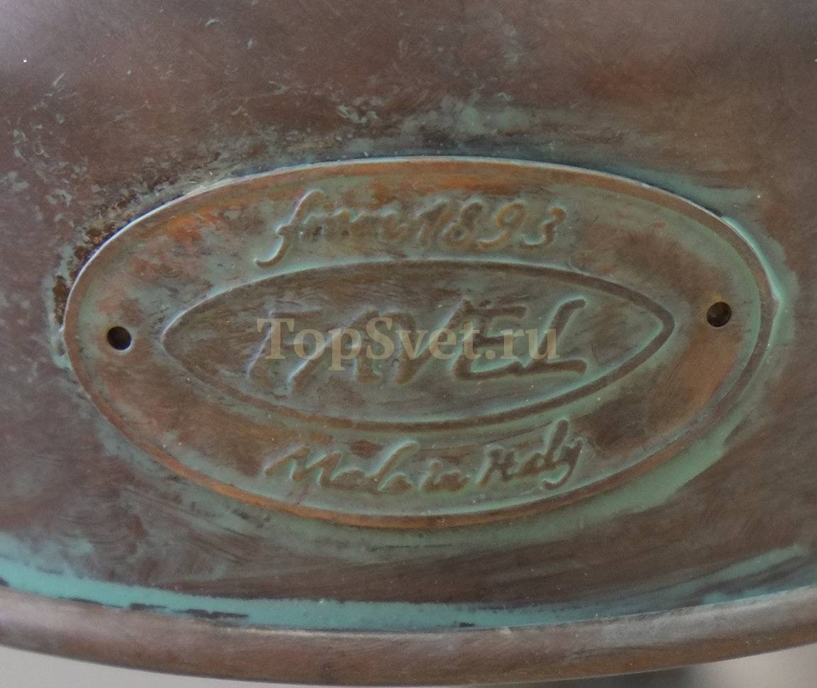 Корпус настенного светильника создан из качественного металл, цвет арматуры - состаренная бронза, цвет плафона - состаренная бронза, что придает этому светильнику изысканности.