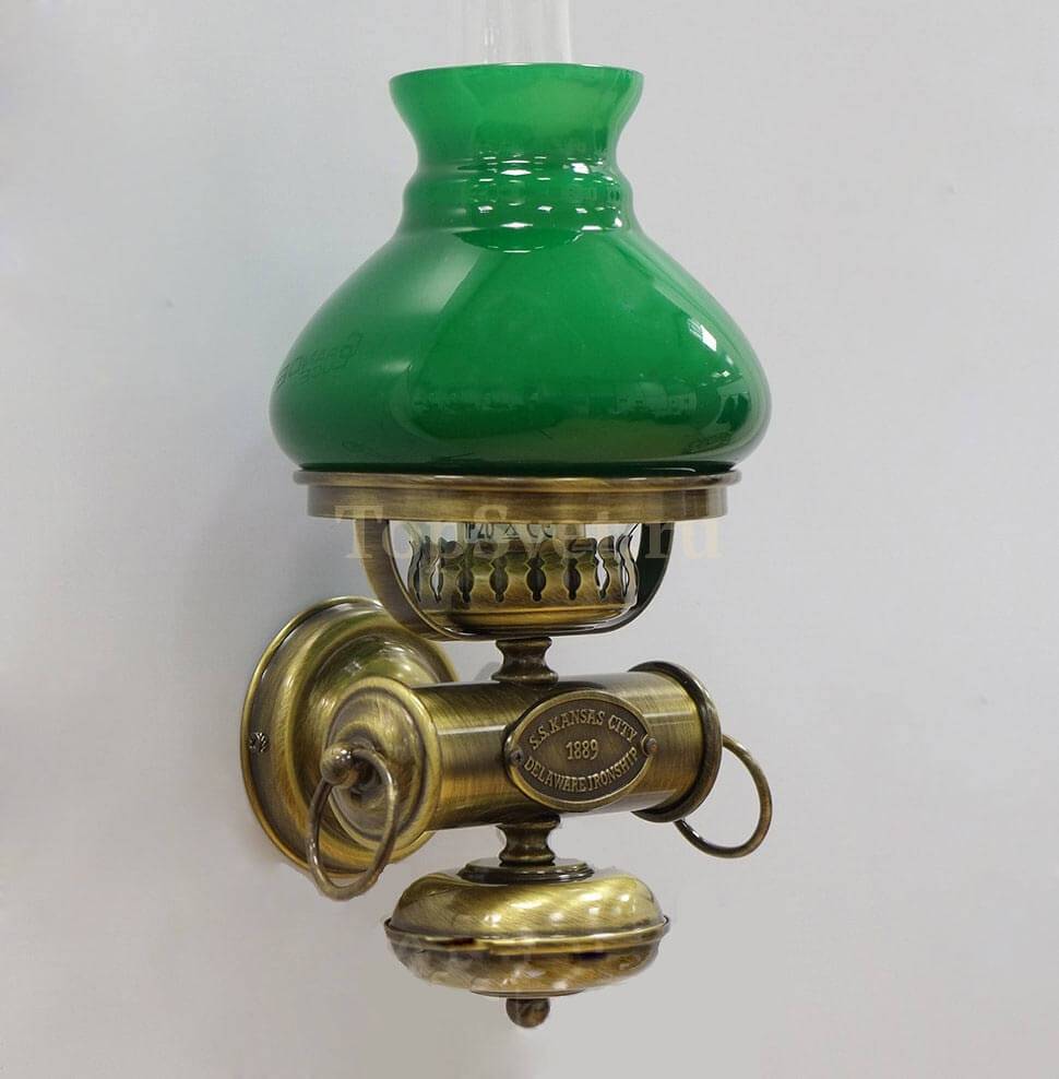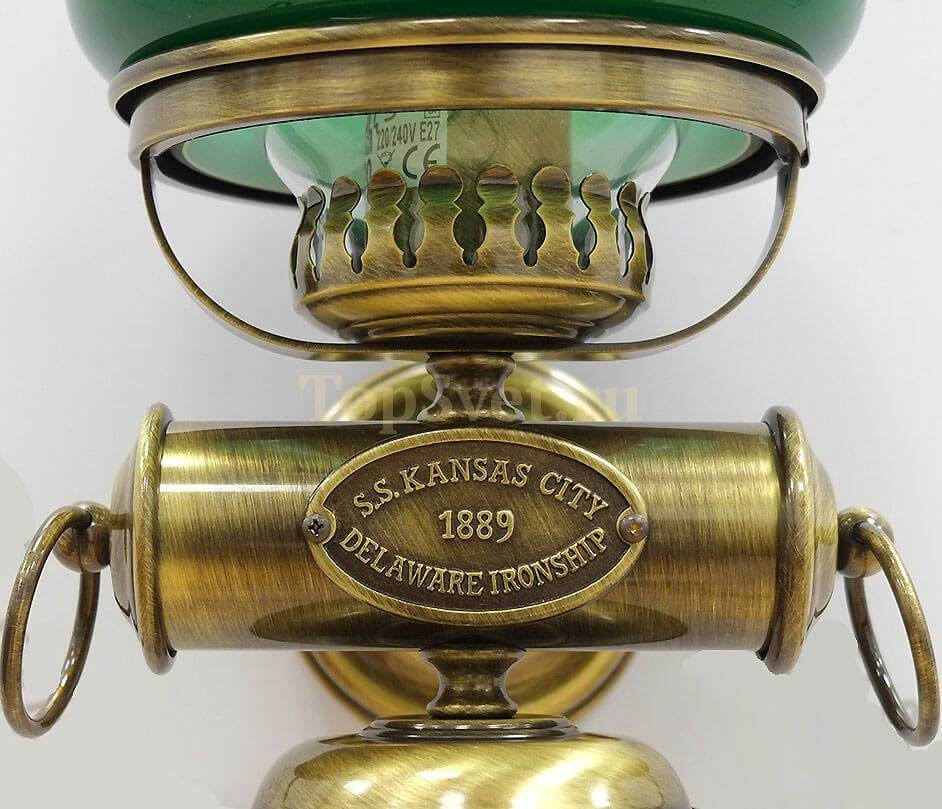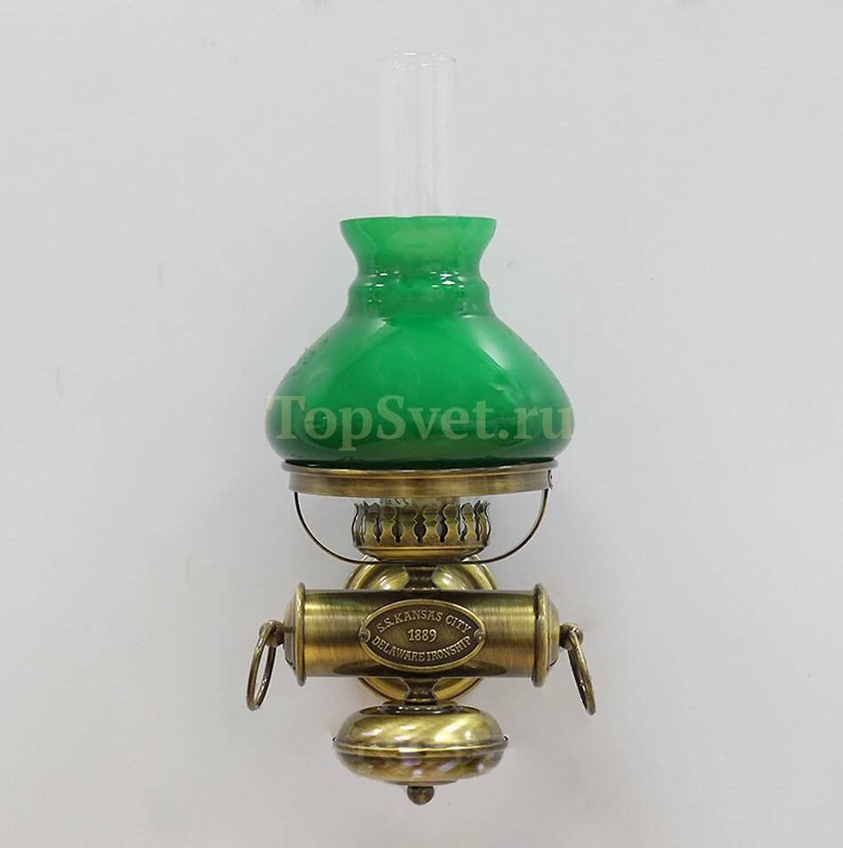 Корпус настенного светильника создан из прочного металл, цвет каркаса - бронза, цвет плафона - зелёный, что придает этому светильнику изысканности.
