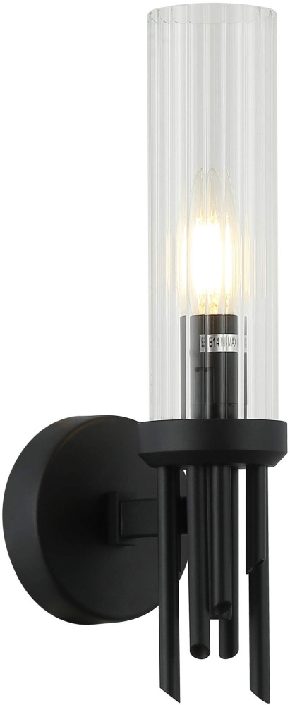 Каркас бра исполнен из надёжного металл, цвет каркаса - чёрный, цвет плафона - прозрачный, что придает этому светильнику благородности.