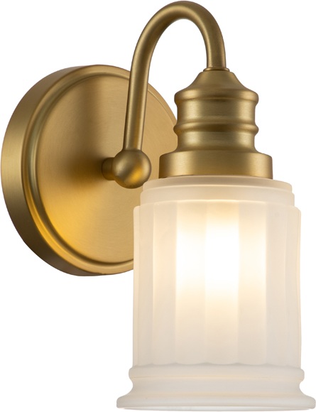 Корпус бра исполнен из прочного металл, цвет корпуса - латунный, цвет плафона - белый, что придает этому светильнику изысканности.
