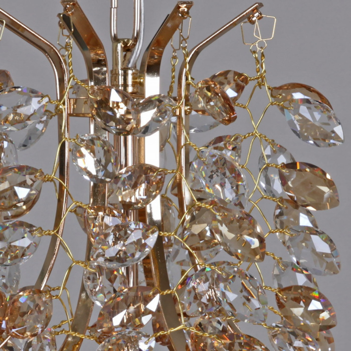 Корпус подвесной люстры реализован из прочного металла, а золотой цвет придаст вашему интерьеру изысканности. Плафон выполнен в прозрачном, золотом цвете, что добавляет модели легкости, благородства и завершенность образа.