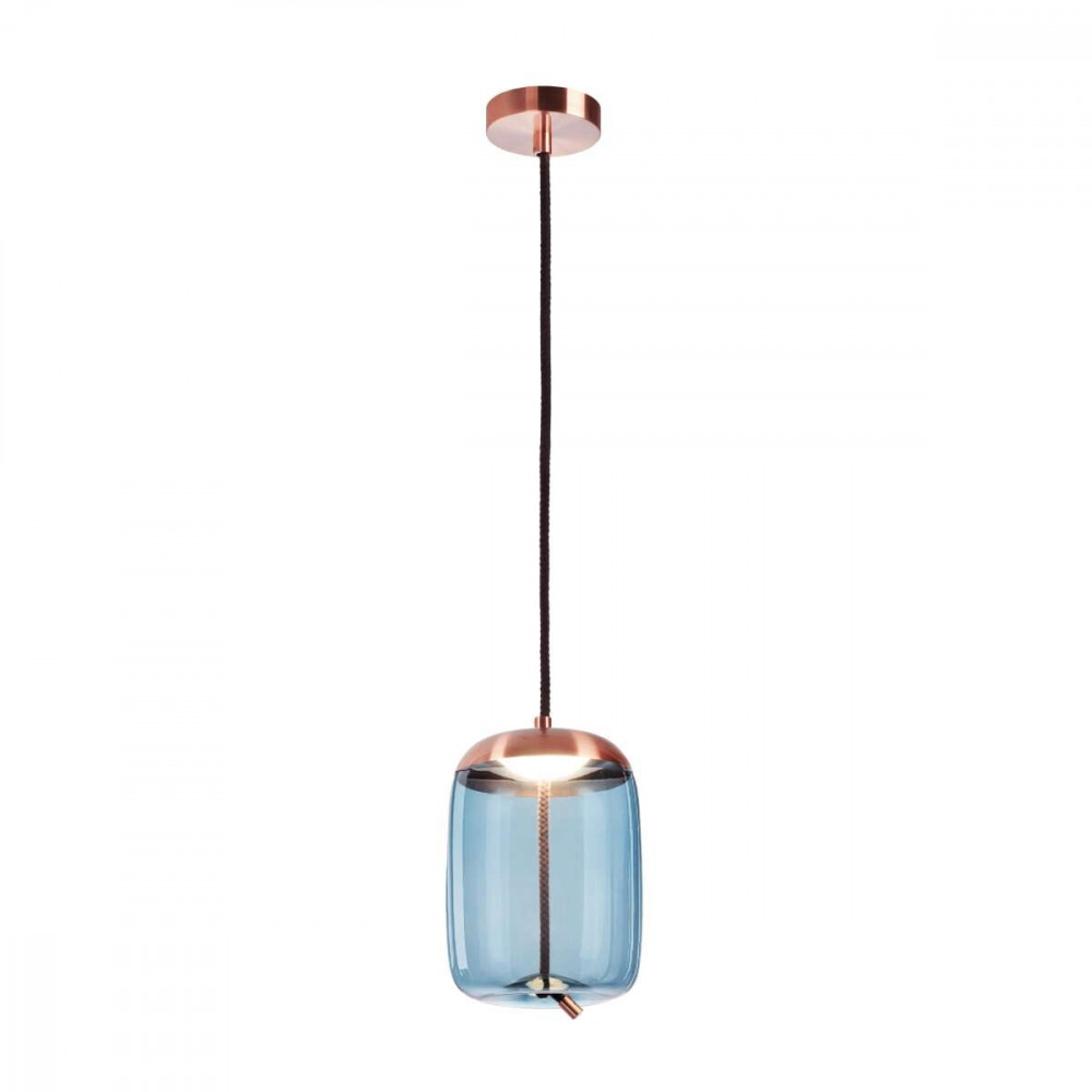 Корпус подвесной люстры создан из высококачественного металла, а медный цвет придаст вашему интерьеру элегантности. Плафон выполнен в голубе цвете, что добавляет модели легкости, элегантности и завершенность образа.