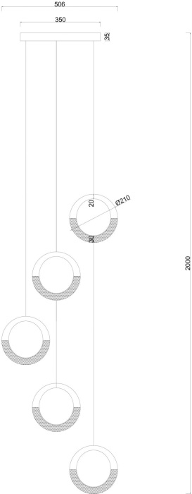 Размеры светильника: ширина 510 мм, высота 2000 мм. - такие габариты позволяют люстре гармонично смотреться как в просторных, так и в небольших помещениях.