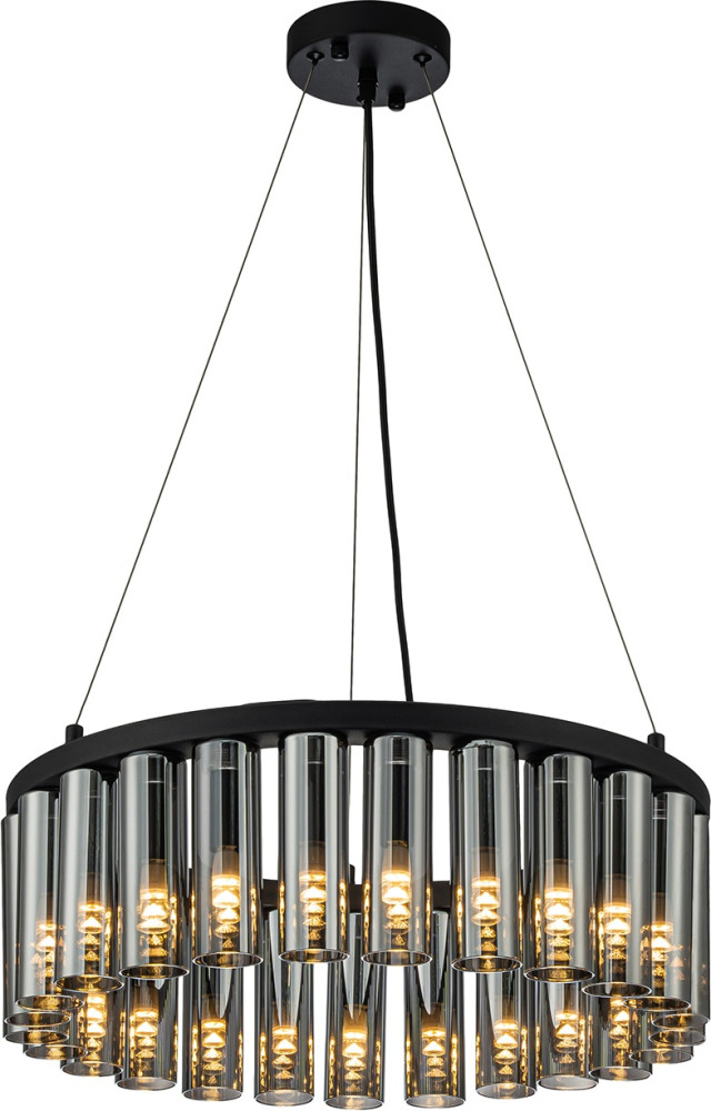 Корпус подвесной люстры реализован из прочного металла, а чёрный цвет добавит вашему интерьеру теплоты. Плафон выполнен в дымчатом цвете, что добавляет модели легкости, элегантности и завершенность образа.