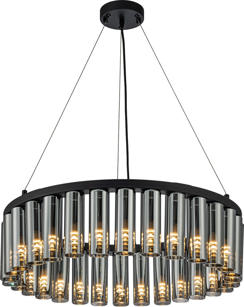 Корпус подвесной люстры реализован из прочного металла, а чёрный цвет добавит вашему интерьеру теплоты. Плафон выполнен в дымчатом цвете, что добавляет модели легкости, элегантности и завершенность образа.