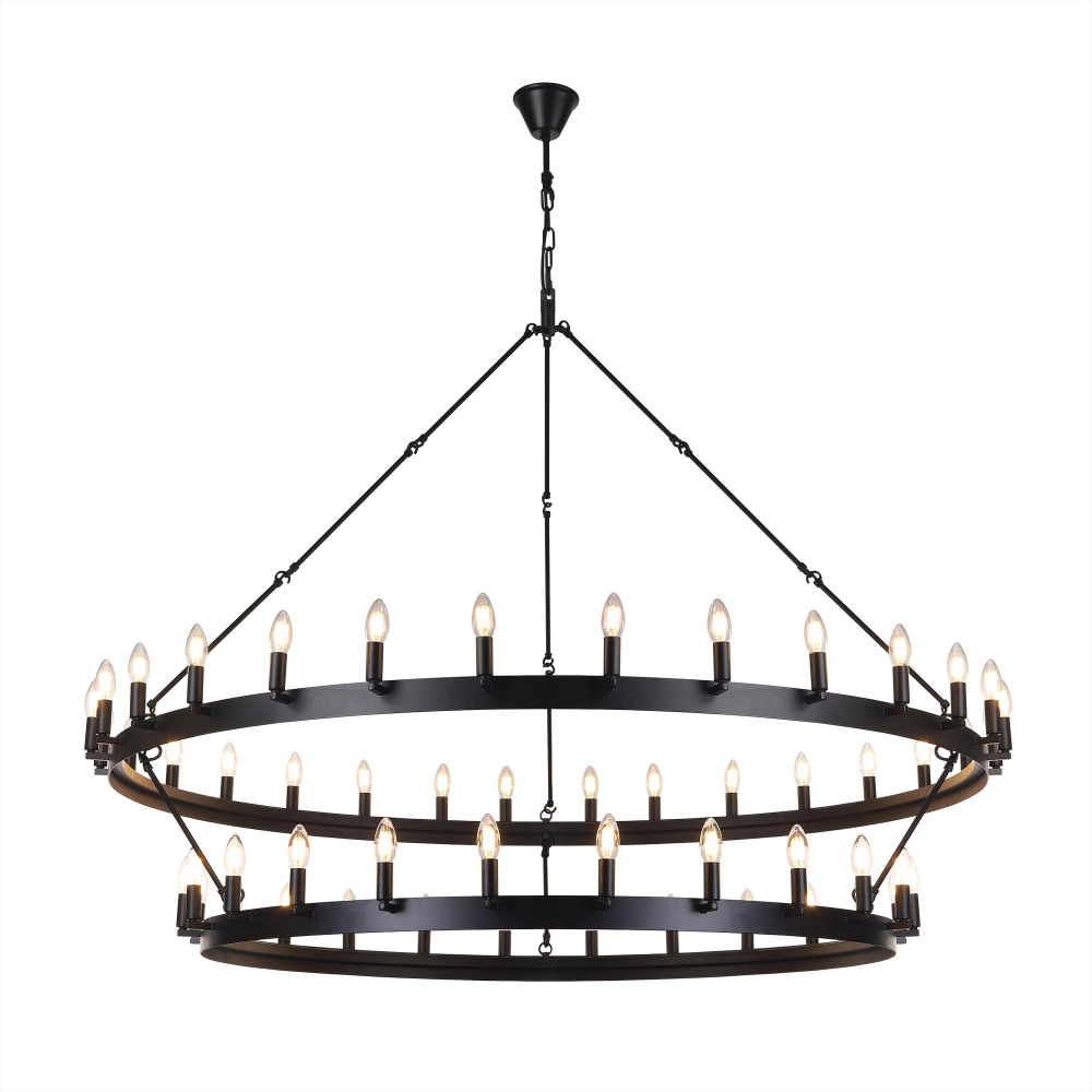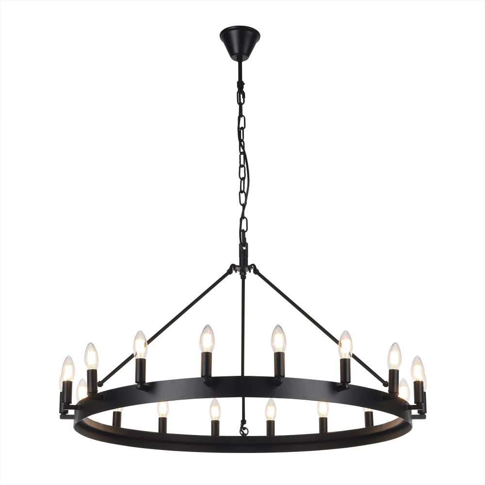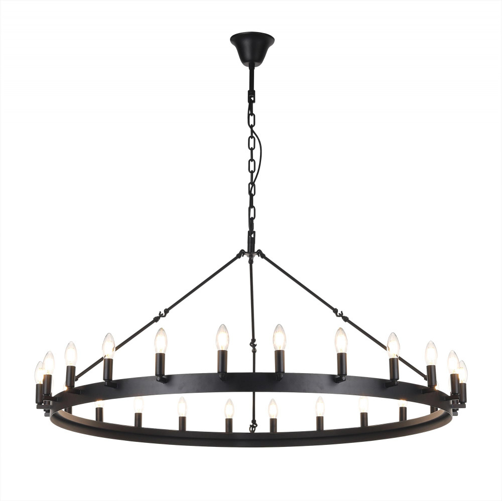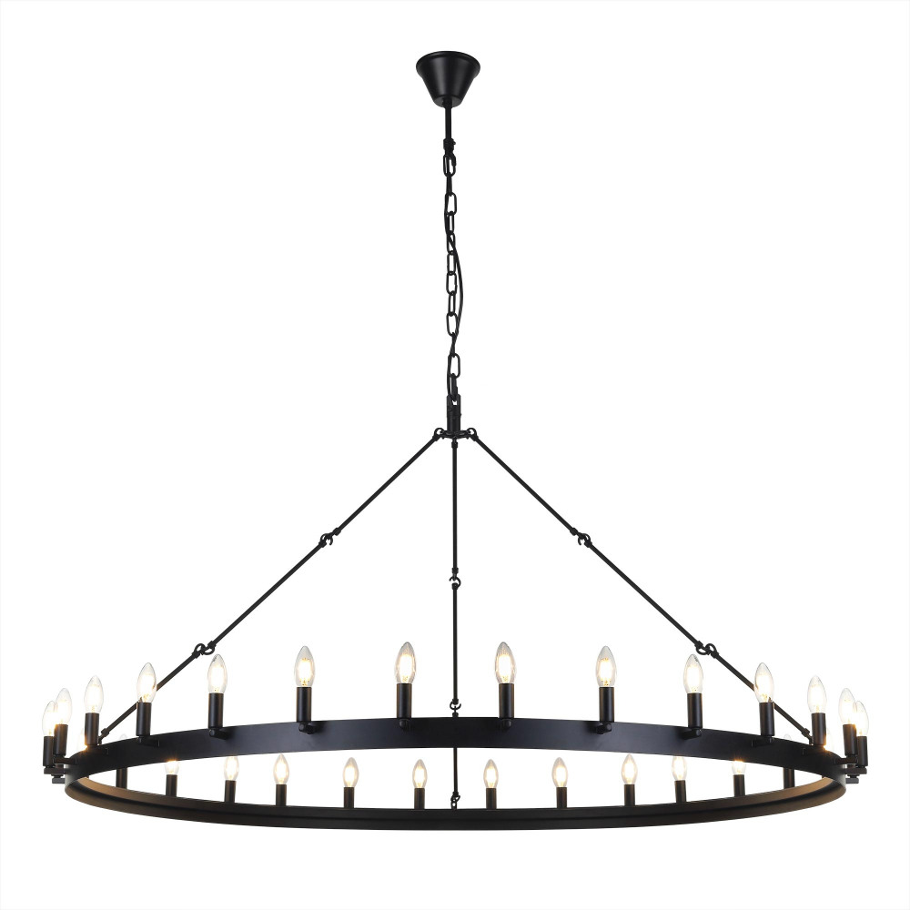 Классический замковый характер и аккуратное кованое кольцо делают этот светильник выразительным акцентом для современного интерьера. Металлическая арматура в чёрном цвете, 12 ламп с цоколем E14 и внушительная общая мощность 720 W обеспечивают ровное и комфортное освещение до 31 м² — как раз то, что нужно для уютной зоны отдыха. Диаметр (ширина) 660 мм сохраняет визуальную лёгкость, а кольцевая форма гармонично смотрится над обеденной группой или в центре комнаты.