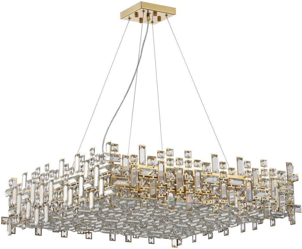 Каркас подвесной люстры сделан из прочного металла, а золотой цвет добавит вашему интерьеру элегантности. Плафон выполнен в прозрачном цвете, что добавляет модели легкости, элегантности и завершенность образа.