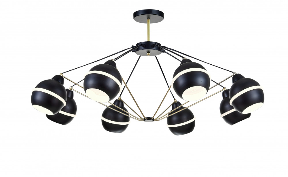 Каркас потолочной люстры сделан из прочного металла, что добавляет ей прочности и долговечности. Плафон в чёрном цвете придаёт модели лёгкости, элегантности и завершенности, благодаря чему люстра станет настоящим украшением вашего интерьера.