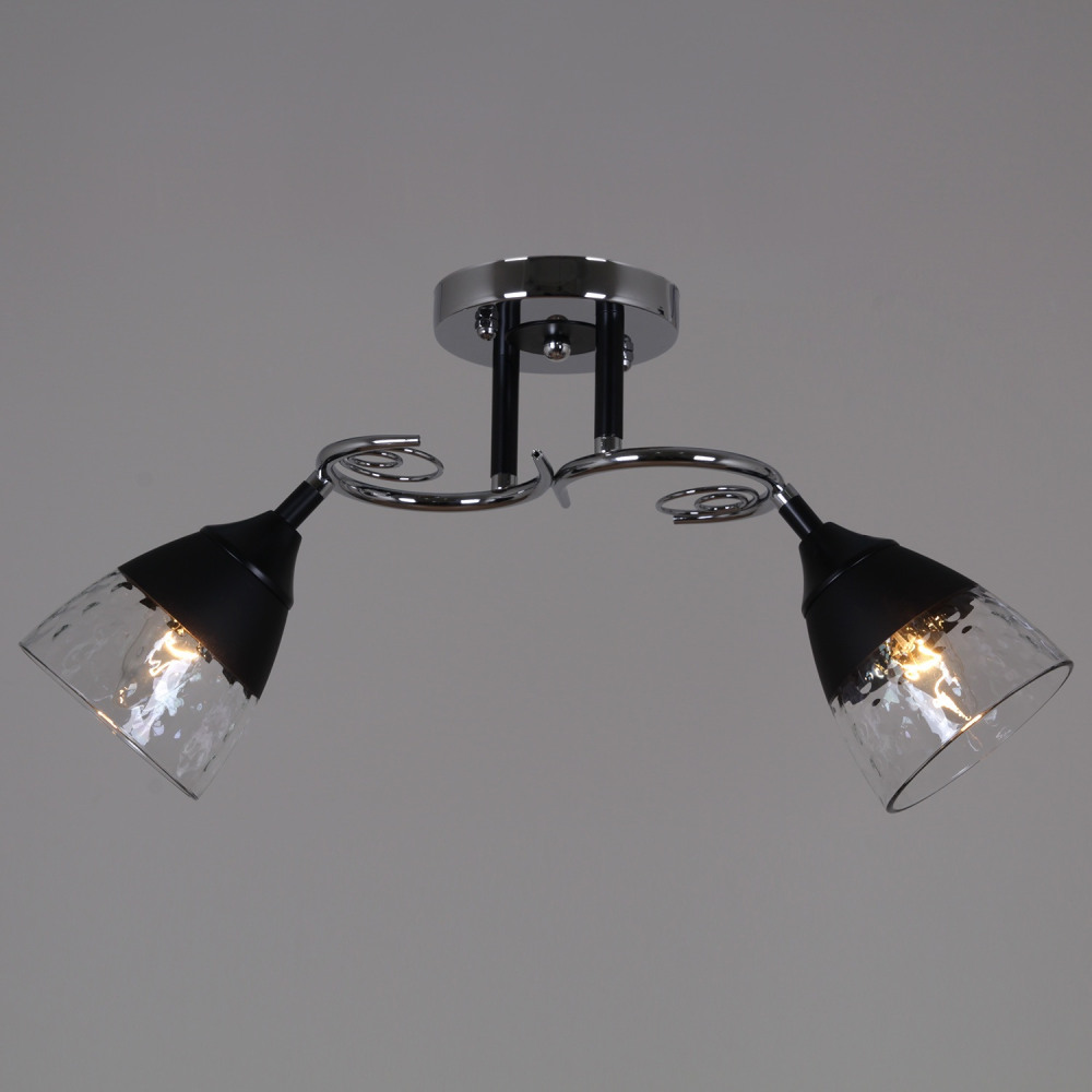 Каркас потолочной люстры изготовлен из надежного металла, что добавляет ей прочности и долговечности. Плафон в прозрачном, чёрном цвете придаёт модели лёгкости, изысканности и завершенности, благодаря чему люстра станет настоящим украшением вашего интерьера.