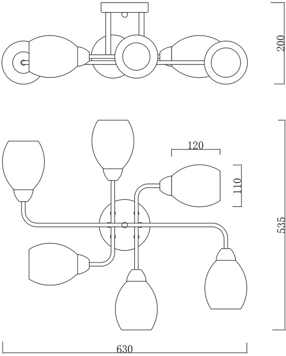 Размеры светильника: ширина 500 мм, высота 210 мм. Такие размеры позволяют люстре совершенно легко вписываться как в просторные, так и в небольшие помещения.