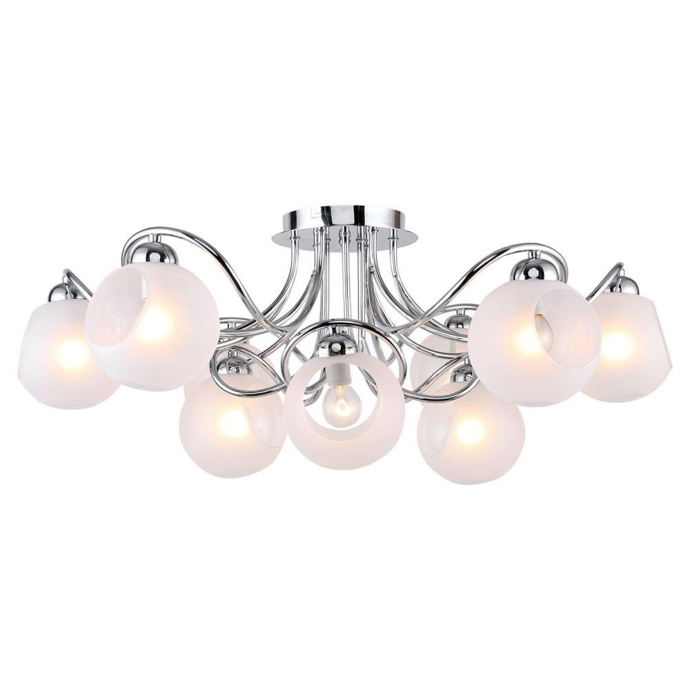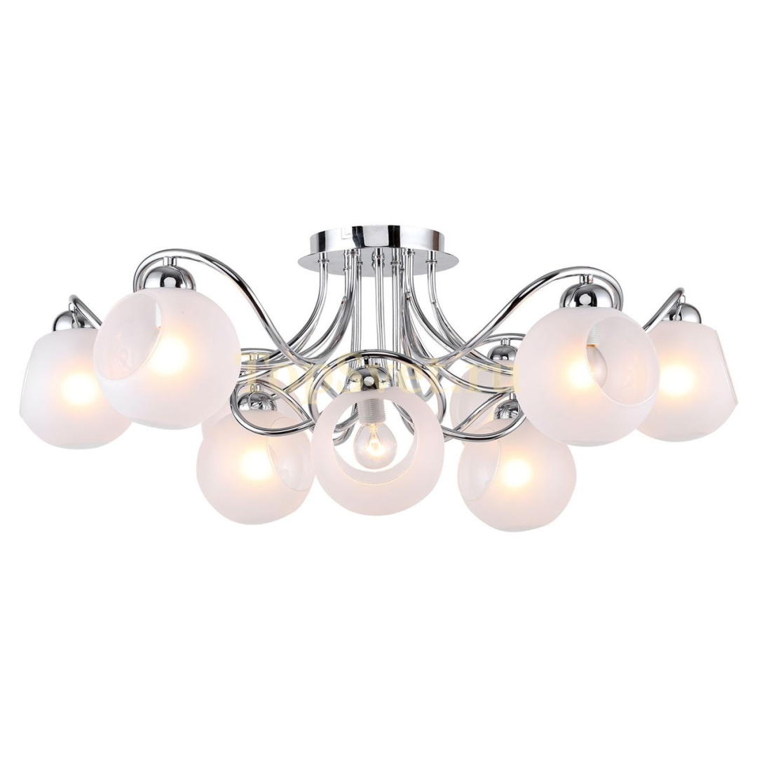 Для создания достаточного освещения в светильнике предусмотрены лампочки в количестве 9 шт. с цоколем E14 и общей мощностью 360 Вт., благодаря чему обеспечивается достаточное освещение для помещений площадью до кв.м.