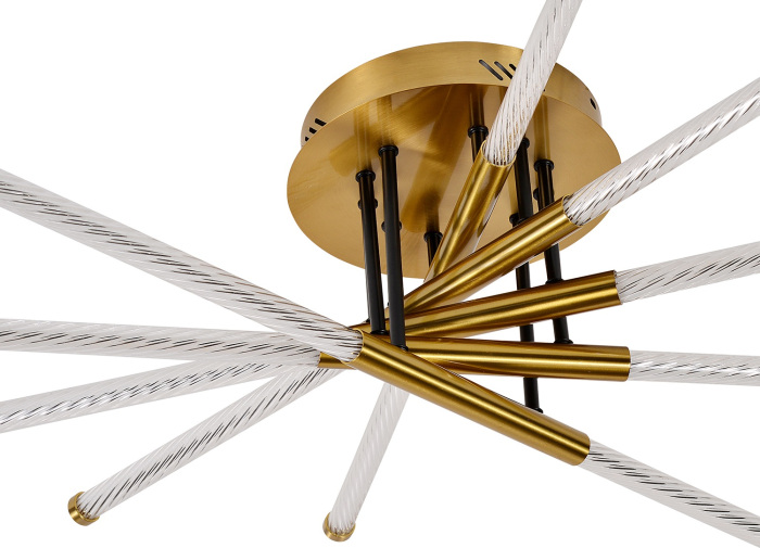 Корпус потолочной люстры выполнен из надежного металла, что добавляет ей прочности и долговечности. Плафон в прозрачном цвете придаёт модели лёгкости, изысканности и завершенности, благодаря чему люстра станет настоящим украшением вашего интерьера.