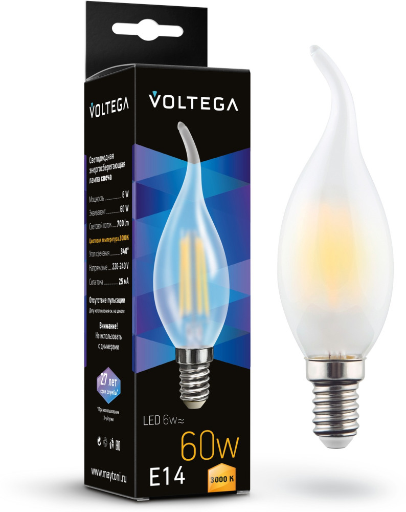 Лампочка светодиодная Candel wind matt 6W 7210 Voltega, а также весь ассортимент товаров, представленный на сайте интернет-магазина ТопСвет.ру обладает фирменной гарантией производителя.