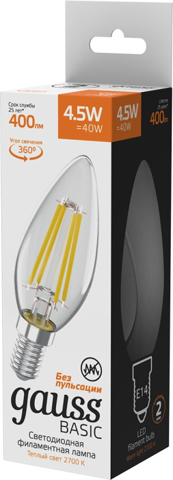Лампочка светодиодная филаментная Basic 1031115 Gauss, а также весь ассортимент товаров, представленный на сайте интернет-магазина ТопСвет.ру обладает фирменной гарантией производителя.