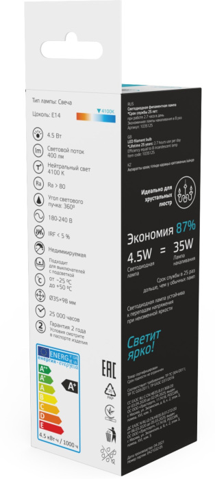 Лампочка светодиодная филаментная Filament 1035125 Gauss 4.5Вт 4100K