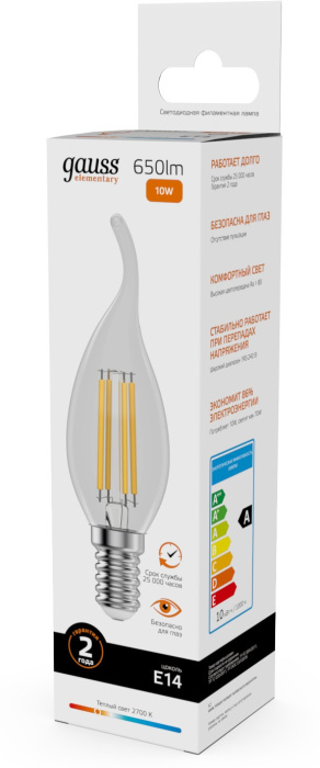 Лампочка светодиодная филаментная Filament Elementary 42110 Gauss, а также весь ассортимент товаров, представленный на сайте интернет-магазина ТопСвет.ру обладает фирменной гарантией производителя.