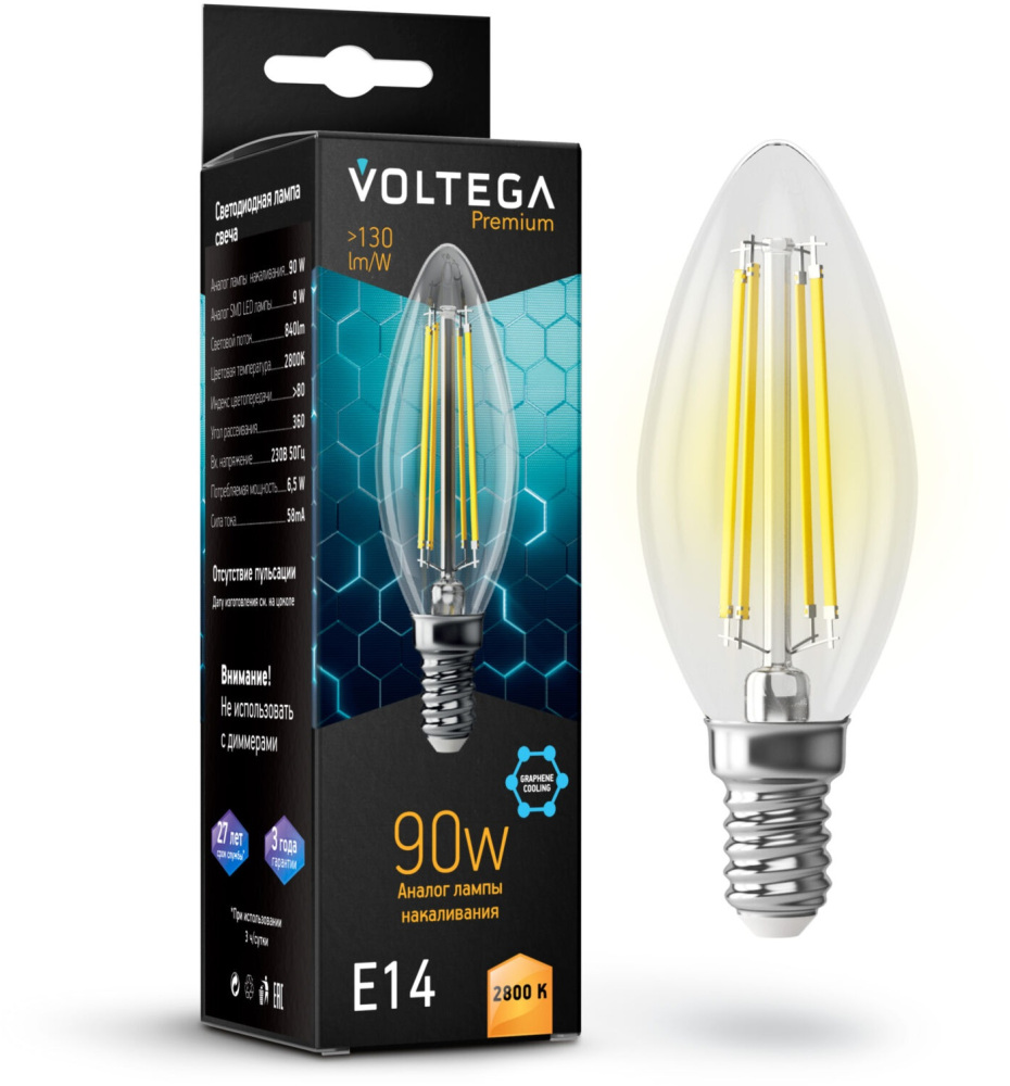 Лампочка светодиодная Candle 9W Graphene 7135 Voltega, а также весь ассортимент товаров, представленный на сайте интернет-магазина ТопСвет.ру обладает фирменной гарантией производителя.