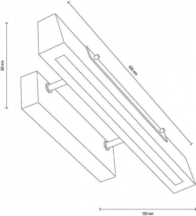 Размеры этого светильника – ширина 450 мм., высота 60 мм. Он идеально впишется для комнаты площадью до квадратных метров. Для создания приятного освещения здесь использовано 1 ламп с цоколем LED и общей мощностью 9 Вт.