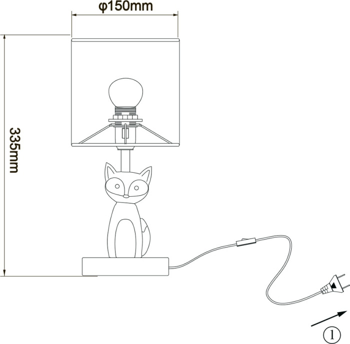 Размеры этой лампы – ширина 150 мм., высота 325 мм. Она идеально подойдёт для комнаты площадью до 3 квадратных метров. Для создания приятного освещения здесь использовано 1 ламп с цоколем E14 и общей мощностью 40 Вт.