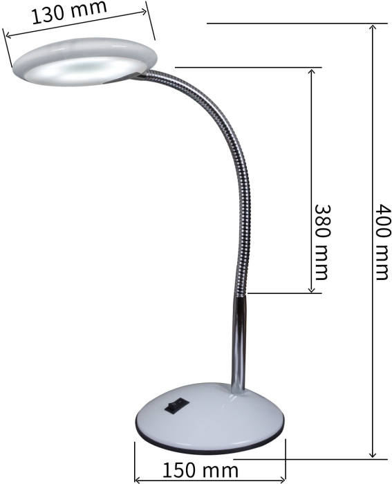 Размеры этой лампы – ширина 230 мм., высота 400 мм. Она идеально впишется для комнаты площадью до кв.метров. Для создания подходящего освещения здесь использовано ламп с цоколем LED и общей мощностью 6 Вт.