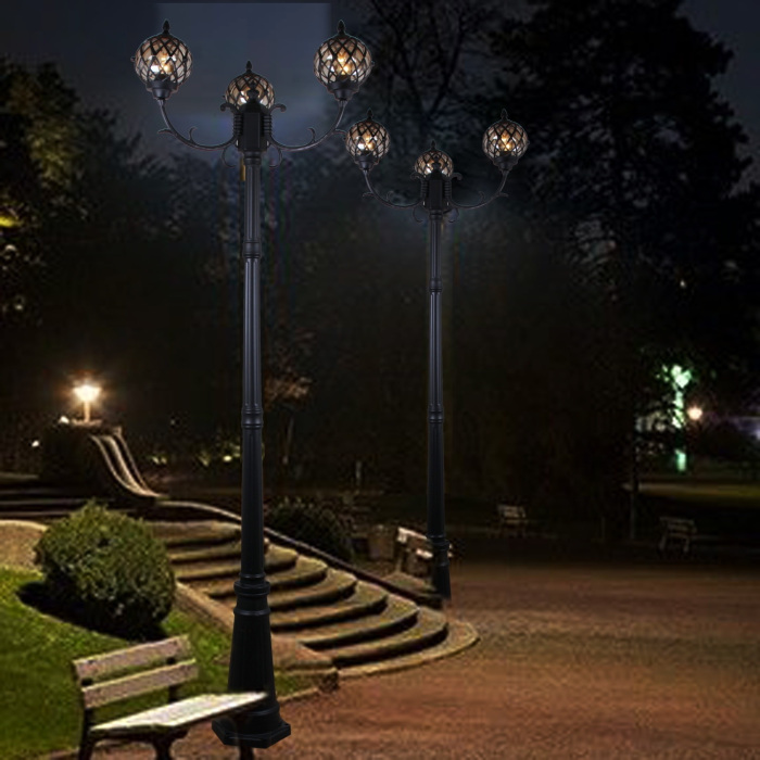 В этой модели уличного светильника установлены лампы в количестве 3 шт. с цоколем E27, общей мощностью 180 Вт.