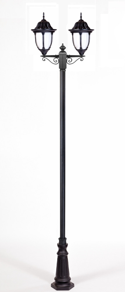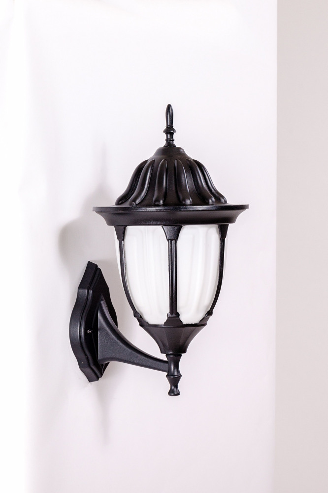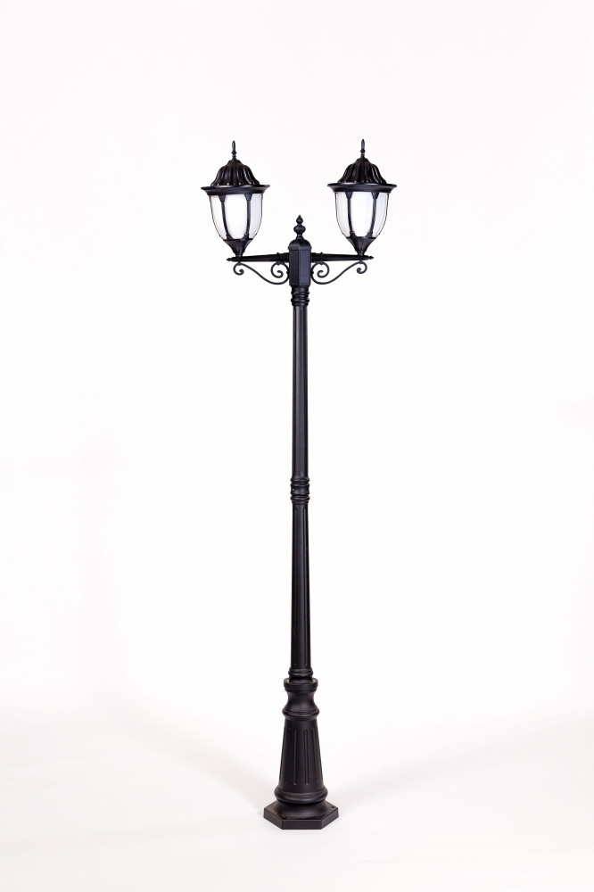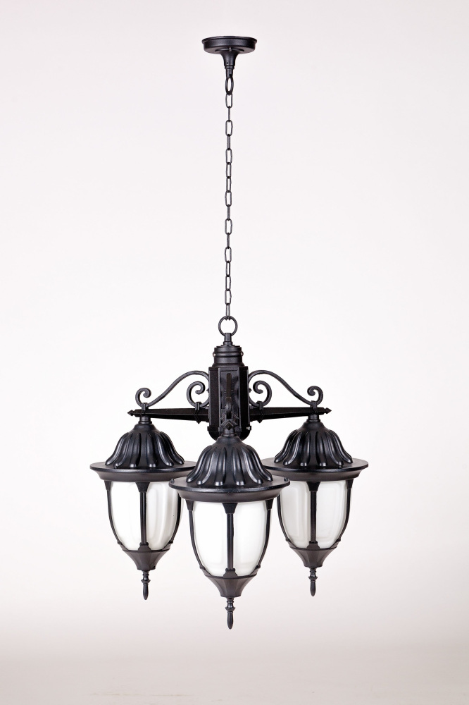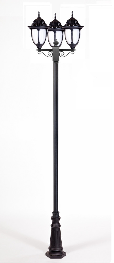 Корпус светильника выполнен из прочного металла с черным матовым покрытием, что обеспечивает долговечность и устойчивость к внешним воздействиям. Три стеклянных плафона матового оттенка равномерно рассеивают свет, создавая комфортную атмосферу на участке.
