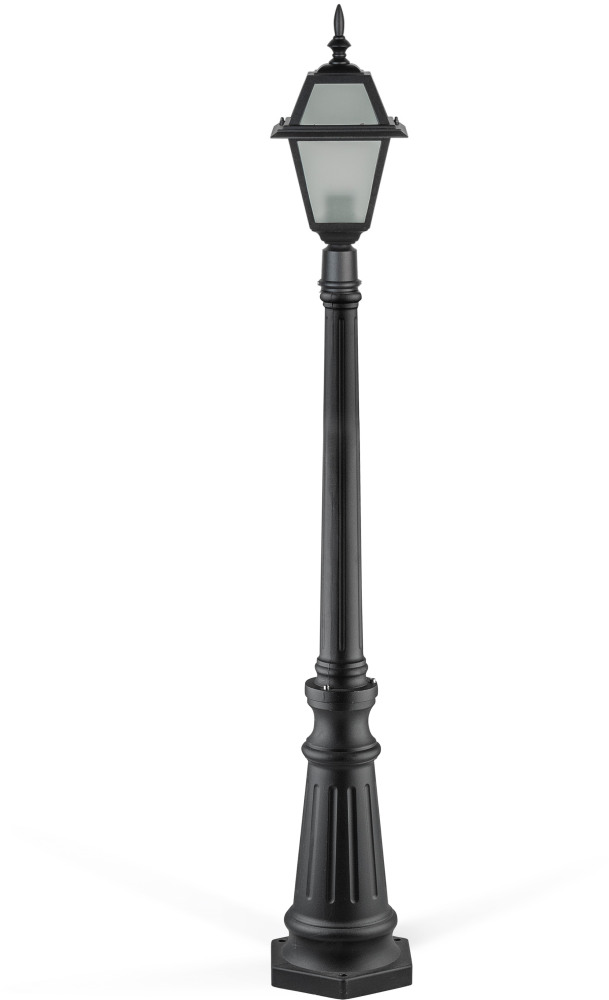 Светильник выполнен в классическом стиле, что делает его универсальным для различных архитектурных решений. Его черный металлический корпус гармонично сочетается с матовым стеклянным плафоном, создавая мягкое и приятное освещение.