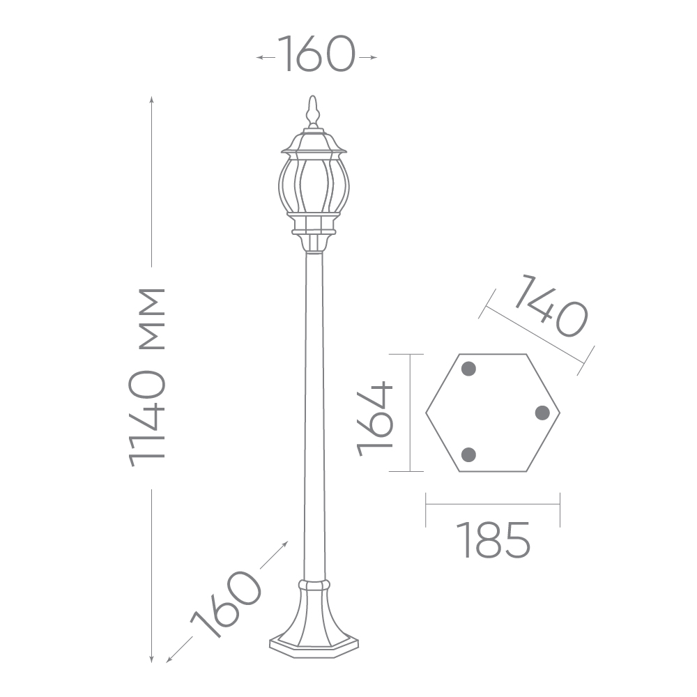 Уличный фонарь 11106 имеет пропорциональные размеры – ширина 160 мм., высота 1200 мм. и может осветить до квадратных метров участка, а благодаря отличной степени влагозащиты: IP44 - его можно прекрасно использовать для участка с соответствующими габаритами