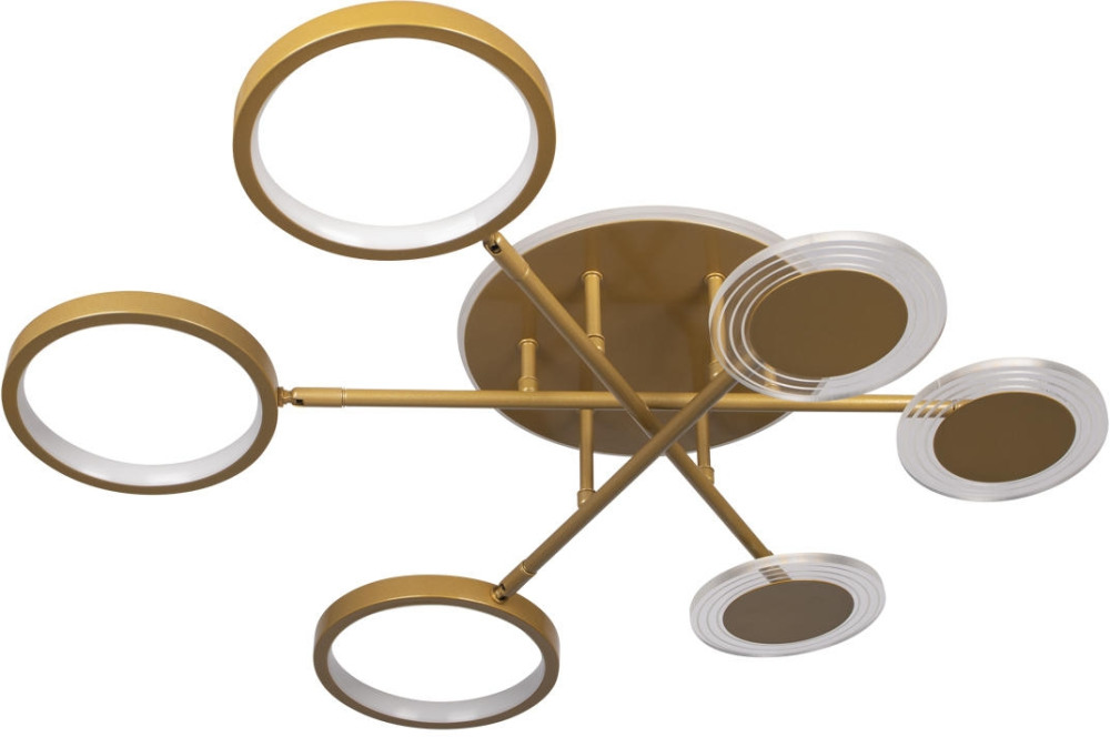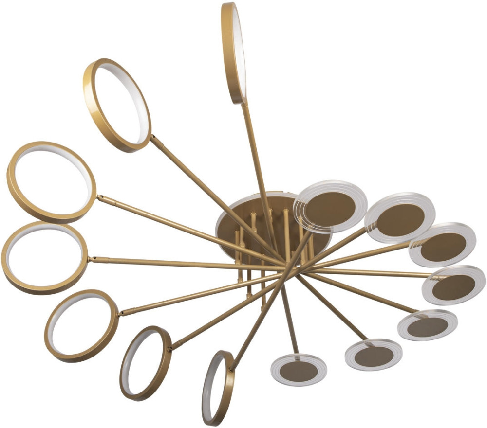 Каркас светодиодной люстры создан из надежного металла, а белый цвет добавит вашему интерьеру элегантности. Плафон выполнен в золотом цвете, что придаёт модели лёгкость, изысканность и завершенность.