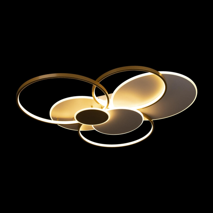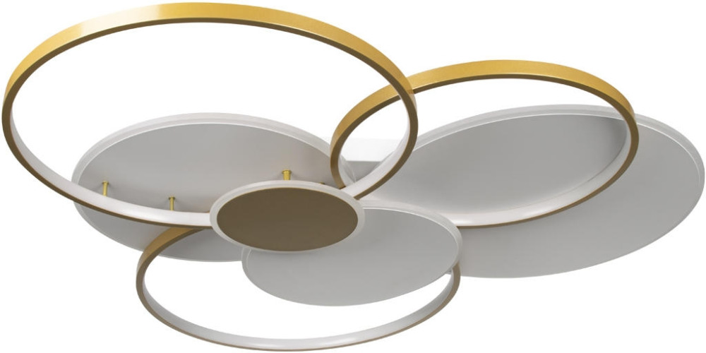 Каркас светодиодной люстры создан из надежного металла, а белый цвет добавит вашему интерьеру элегантности. Плафон выполнен в золотом цвете, что придаёт модели лёгкость, изысканность и завершенность.