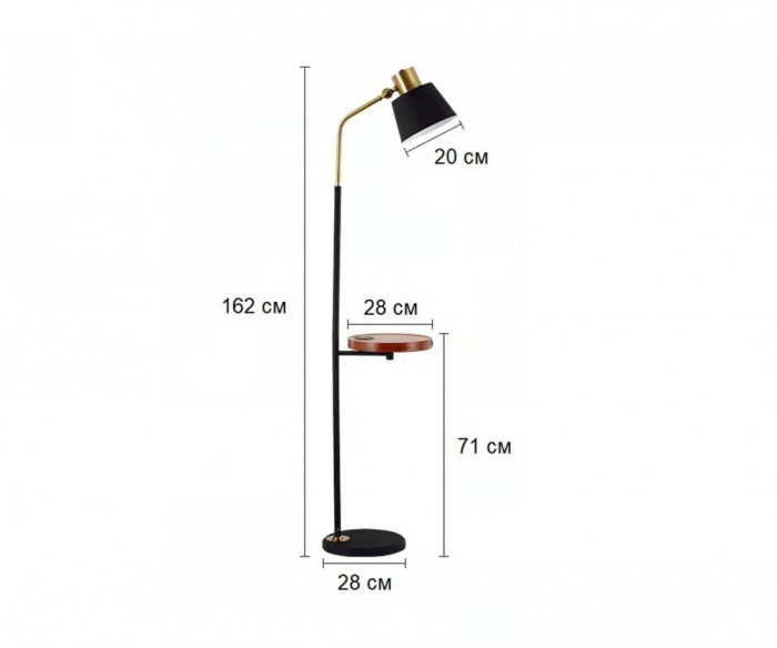 Размеры этого торшера – ширина мм., высота 1700 мм. Он идеально подойдёт для комнаты площадью до 2 кв.метров. Для создания приятного освещения здесь использовано 1 ламп с цоколем E27 и общей мощностью 40 Вт.