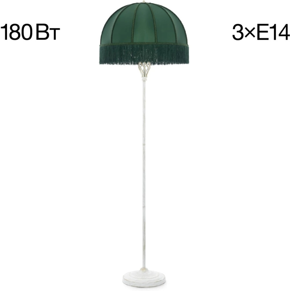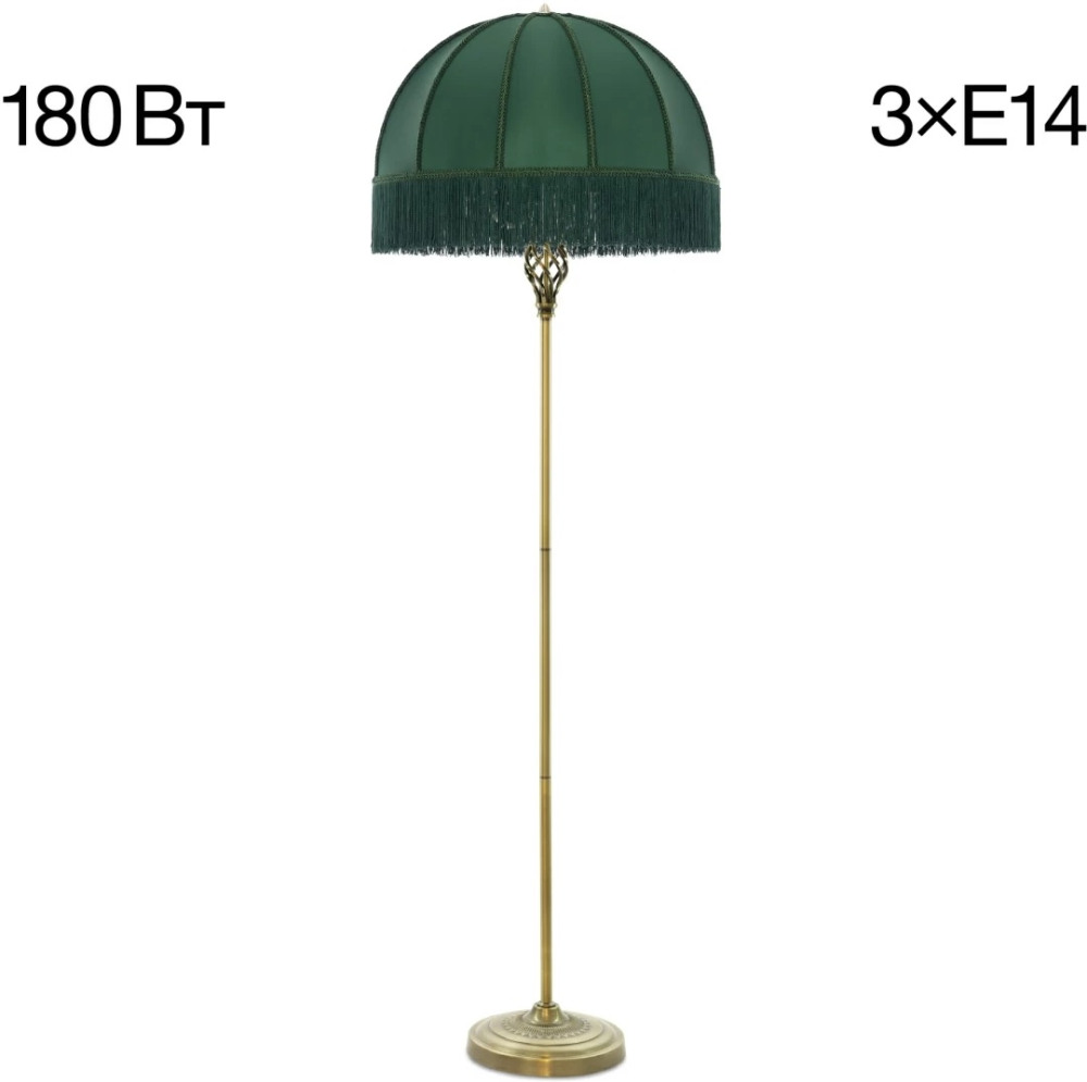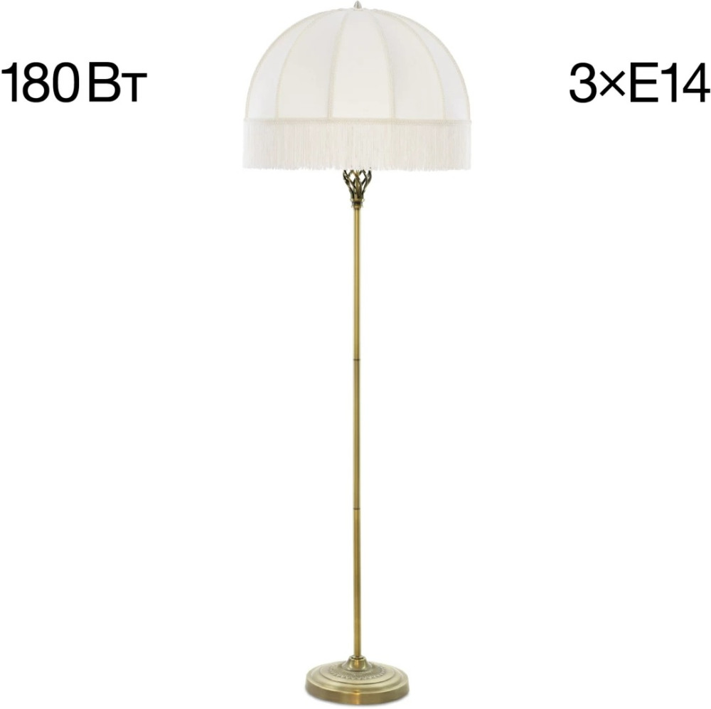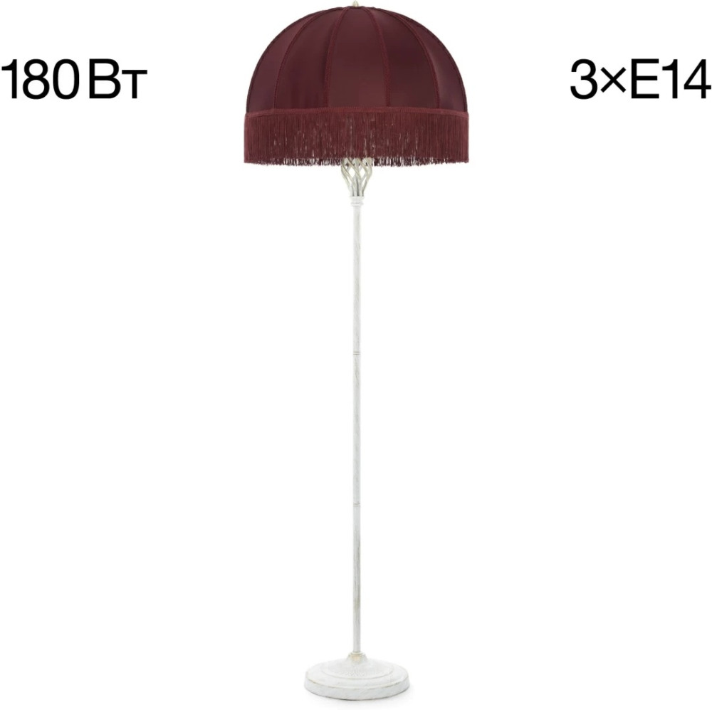 Размеры этого торшера – ширина 510 мм., высота 1640 мм. Он идеально подойдёт для комнаты площадью до 5 кв.метров. Для создания необходимого освещения здесь использовано 3 ламп с цоколем E14 и общей мощностью 180 Вт.