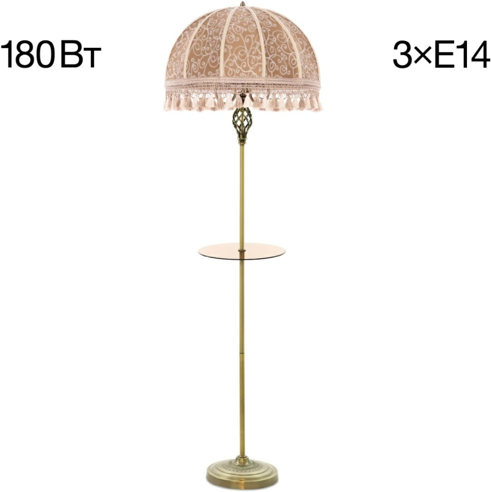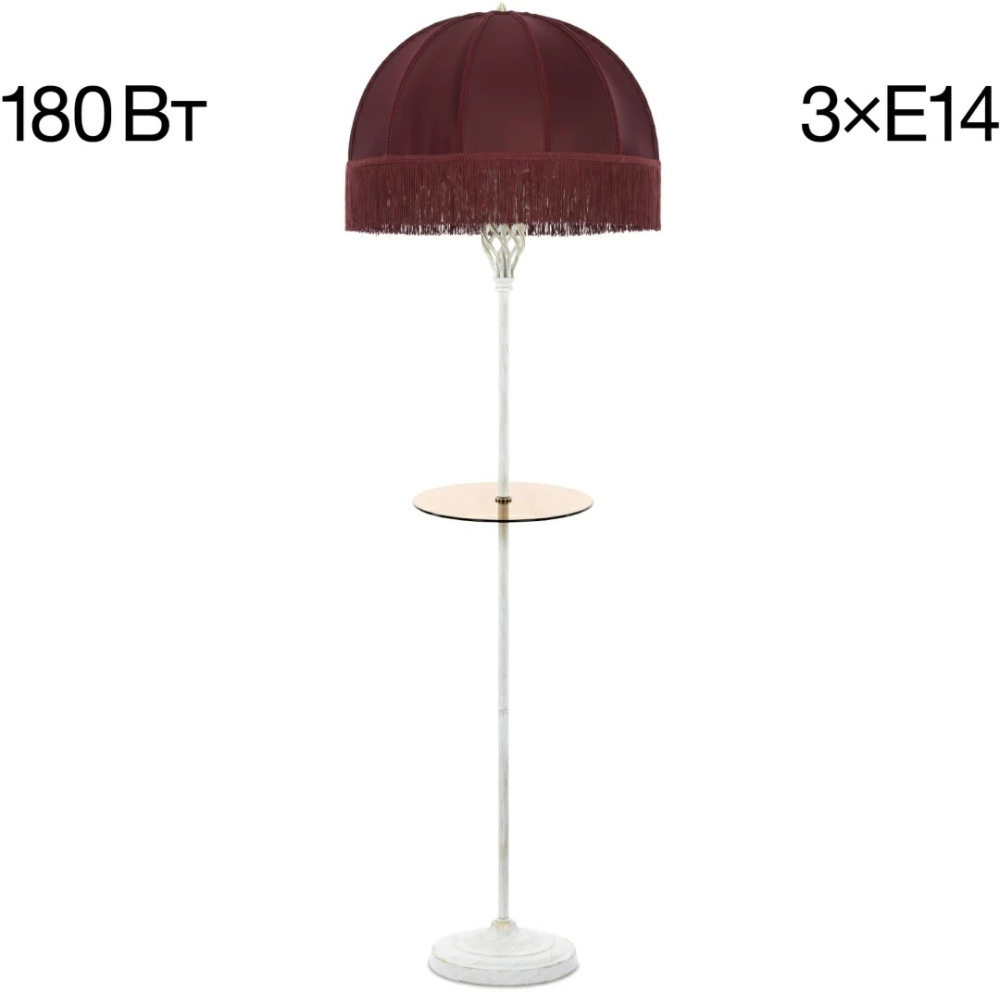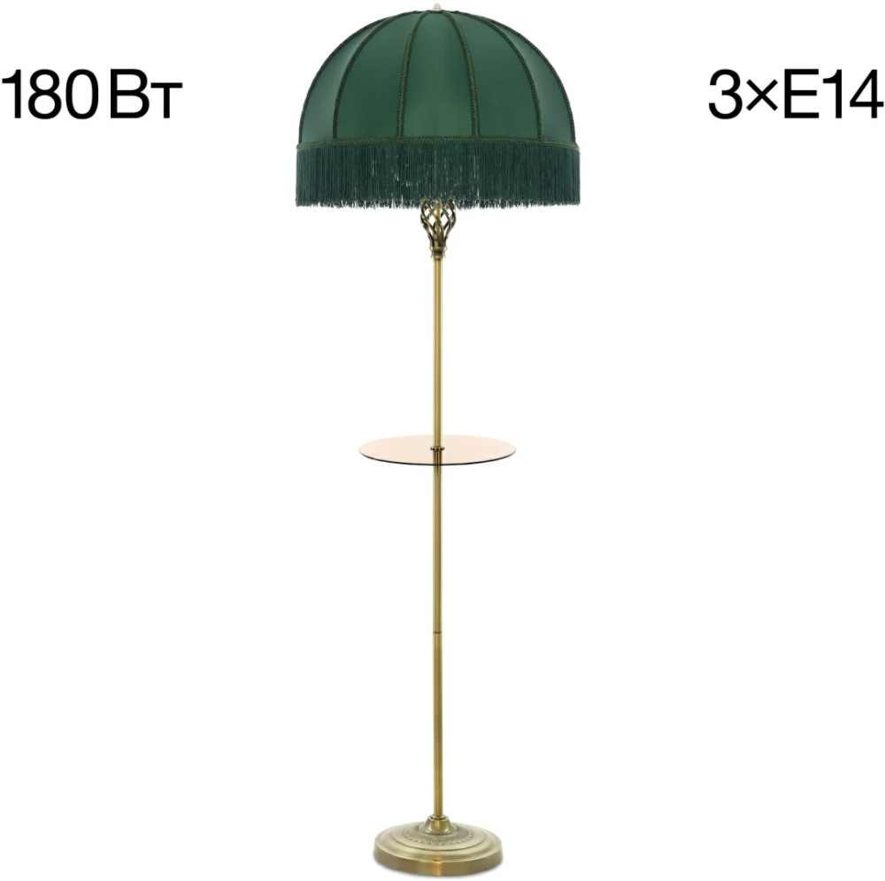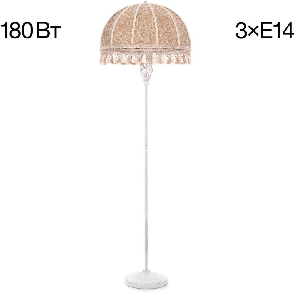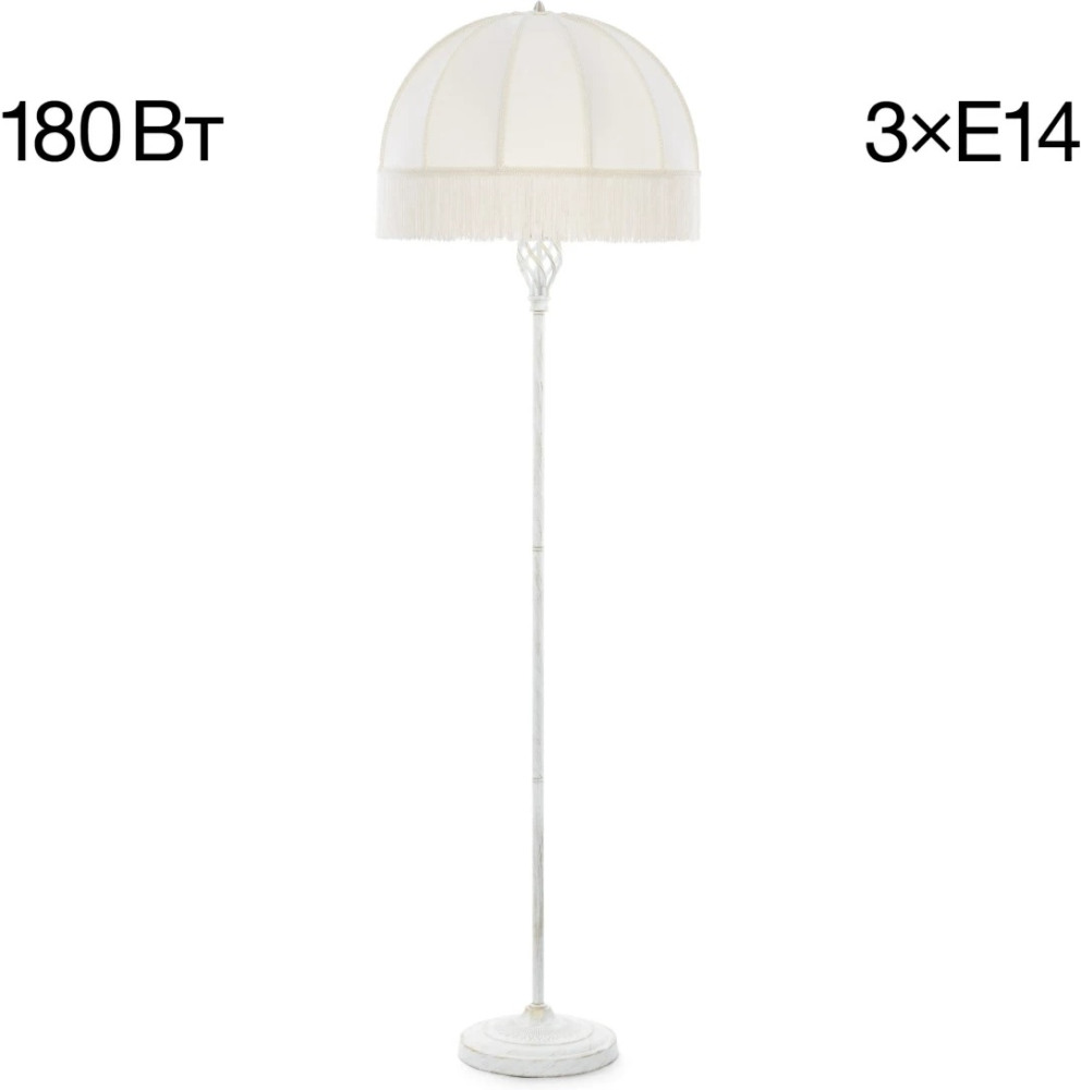 Размеры этого торшера – ширина 510 мм., высота 1640 мм. Он идеально подойдёт для комнаты площадью до 5 кв.метров. Для создания необходимого освещения здесь использовано 3 ламп с цоколем E14 и общей мощностью 180 Вт.