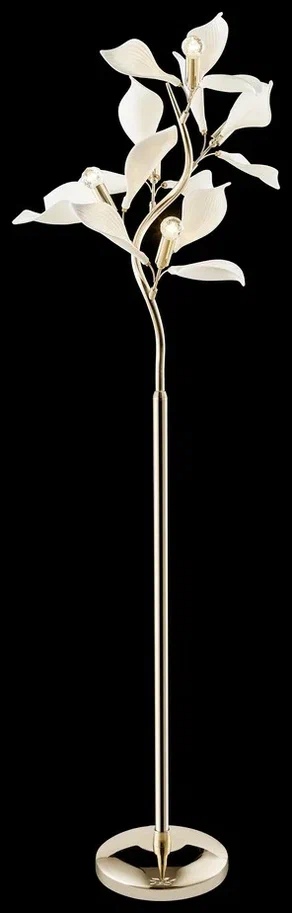 Размеры этого торшера – ширина 450 мм., высота 1550 мм. Он идеально впишется для комнаты площадью до 10 кв.метров. Для создания подходящего освещения здесь использовано 5 ламп с цоколем E14 и общей мощностью 200 Вт.