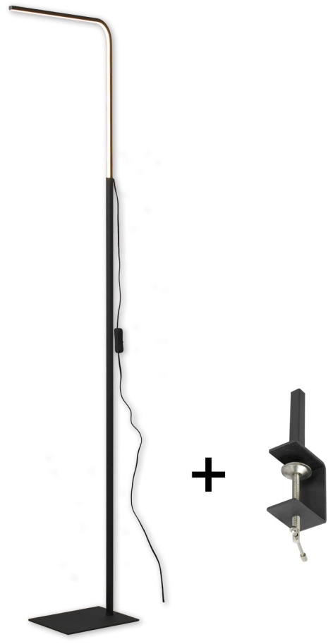Размеры этого торшера – ширина мм., высота 1450 мм. Он идеально впишется для комнаты площадью до 7 квадратных метров. Для создания подходящего освещения здесь использовано 1 ламп с цоколем LED и общей мощностью 9 Вт.